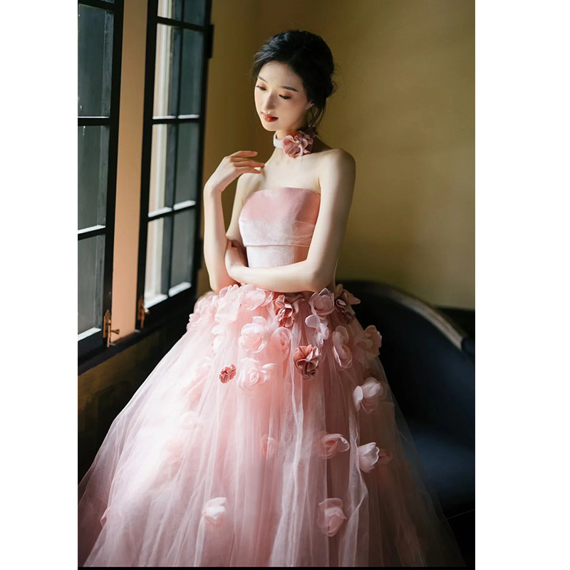 床まで届くロング丈が優美な印象を与え、パーティーや撮影会など晴れの舞台にふさわしい一着です。