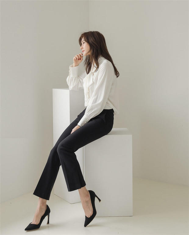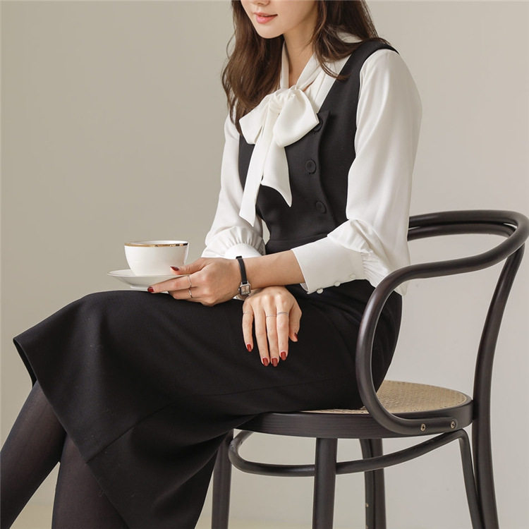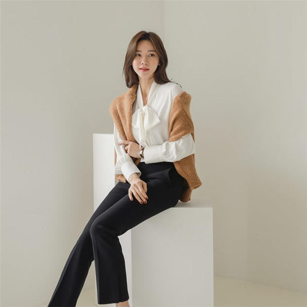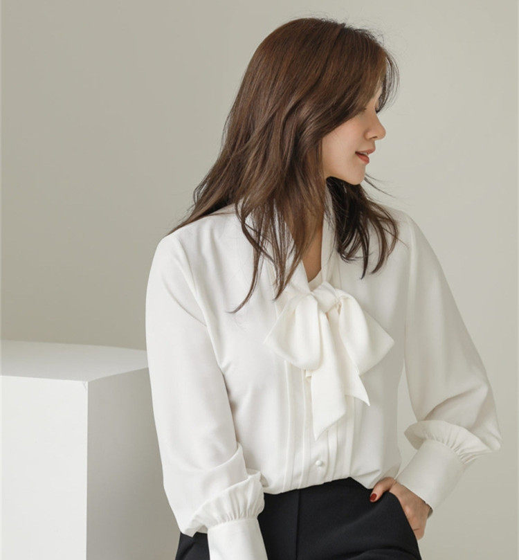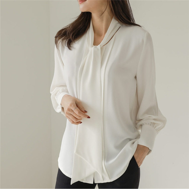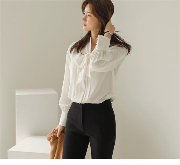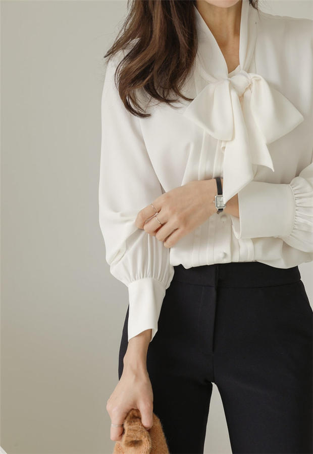 女装スタイルを上品に彩る、後ろ姿が華やかなリボンデザインのブラウスです。
