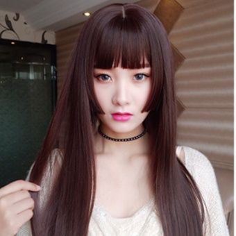 重めのぱっつん前髪と胸下まで伸びる美しいストレートヘアが、理想的な女性らしさを演出します。