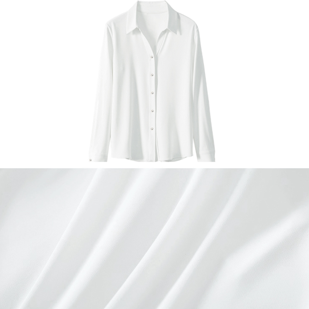 スーツスタイルにも普段使いにも合わせやすい無地の白シャツ。