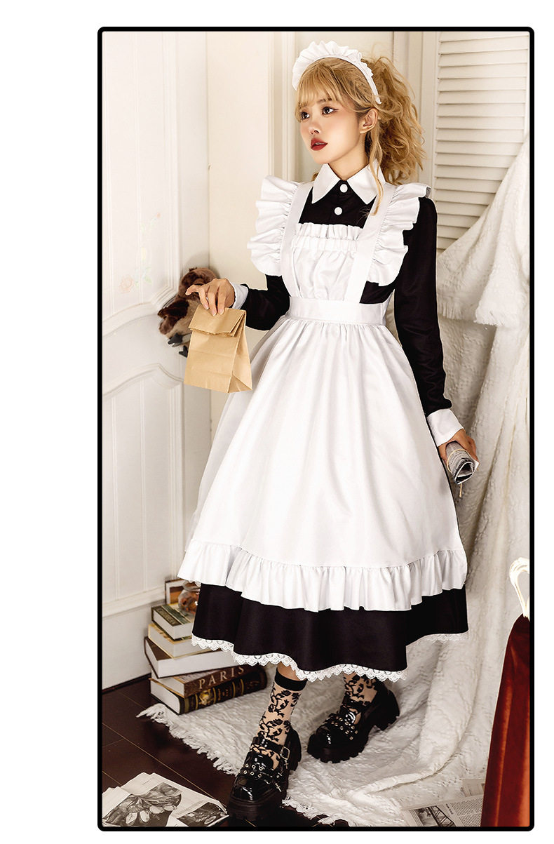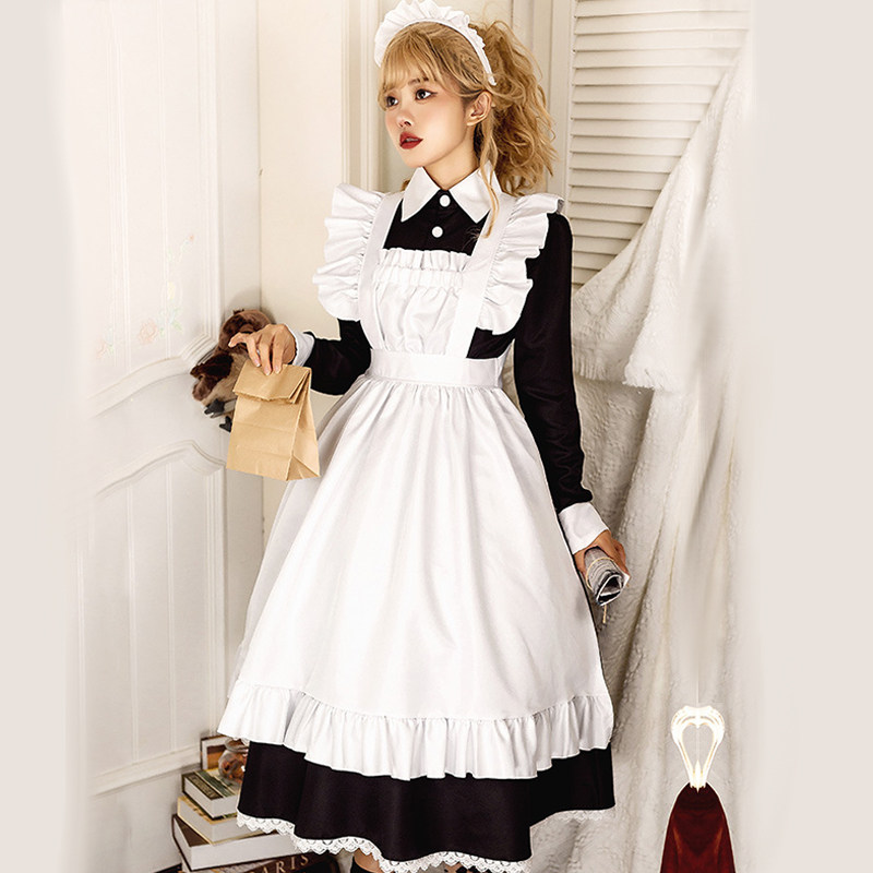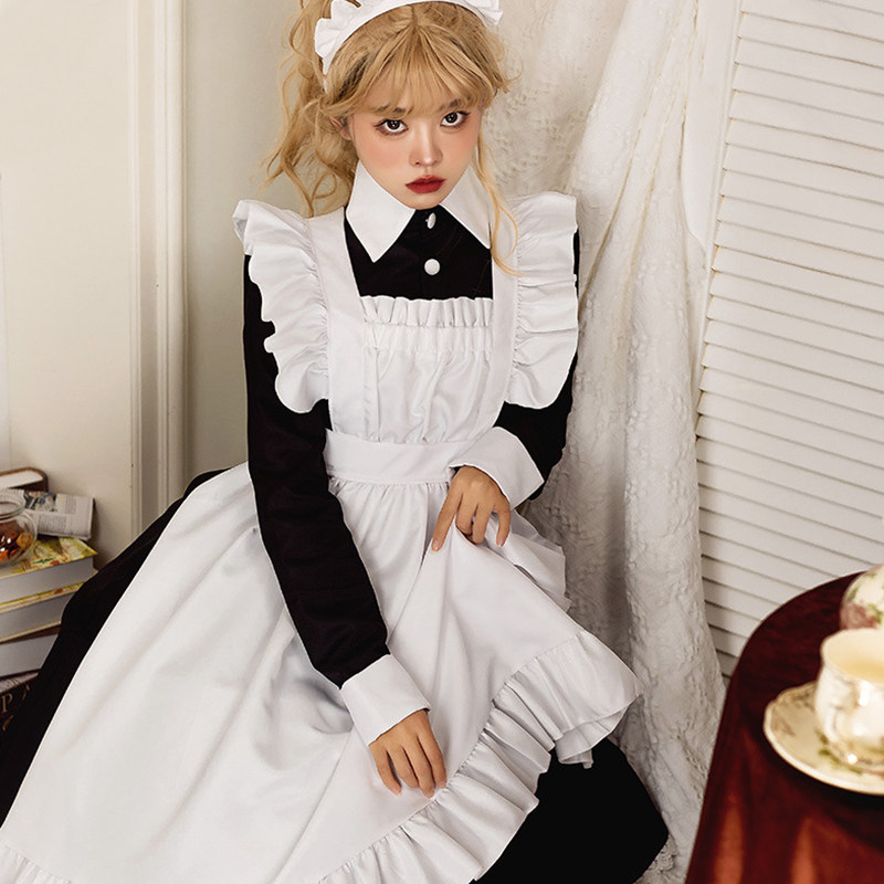 長袖のワンピースに白いエプロンとカチューシャがセットになった豪華な仕様となっています。