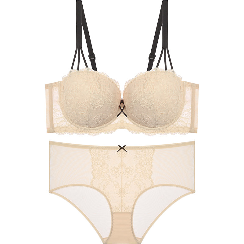 ブラジャーは谷間メイクに優れたパッド入り仕様で、理想的なバストラインを実現。