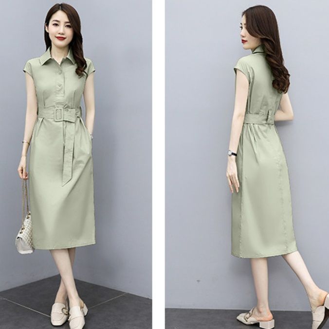 きちんと感のある襟と前開きボタンデザインが魅力のシャツ型ワンピースです。