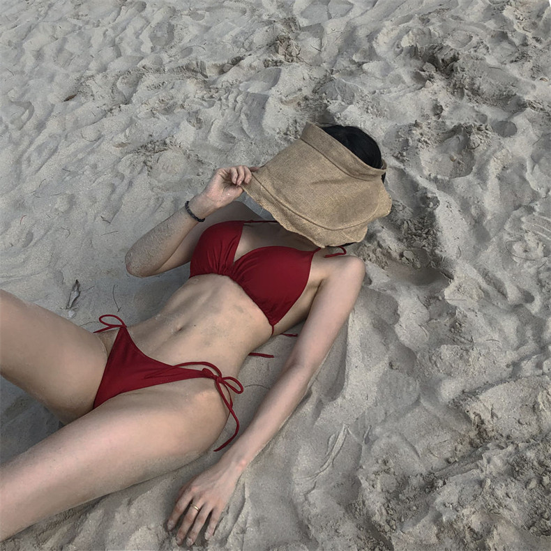 女装を美しく楽しむための三角ホルターネックタイプの水着です。