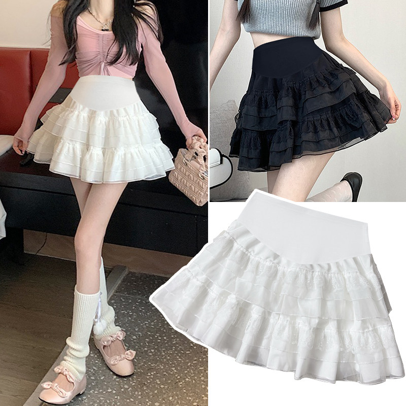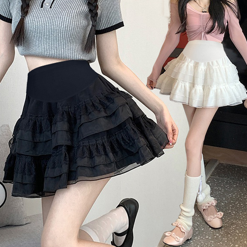 軽やかなシフォン素材を使用し、歩くたびにふんわりと揺れる立体的なフリルが可愛らしさを演出します。