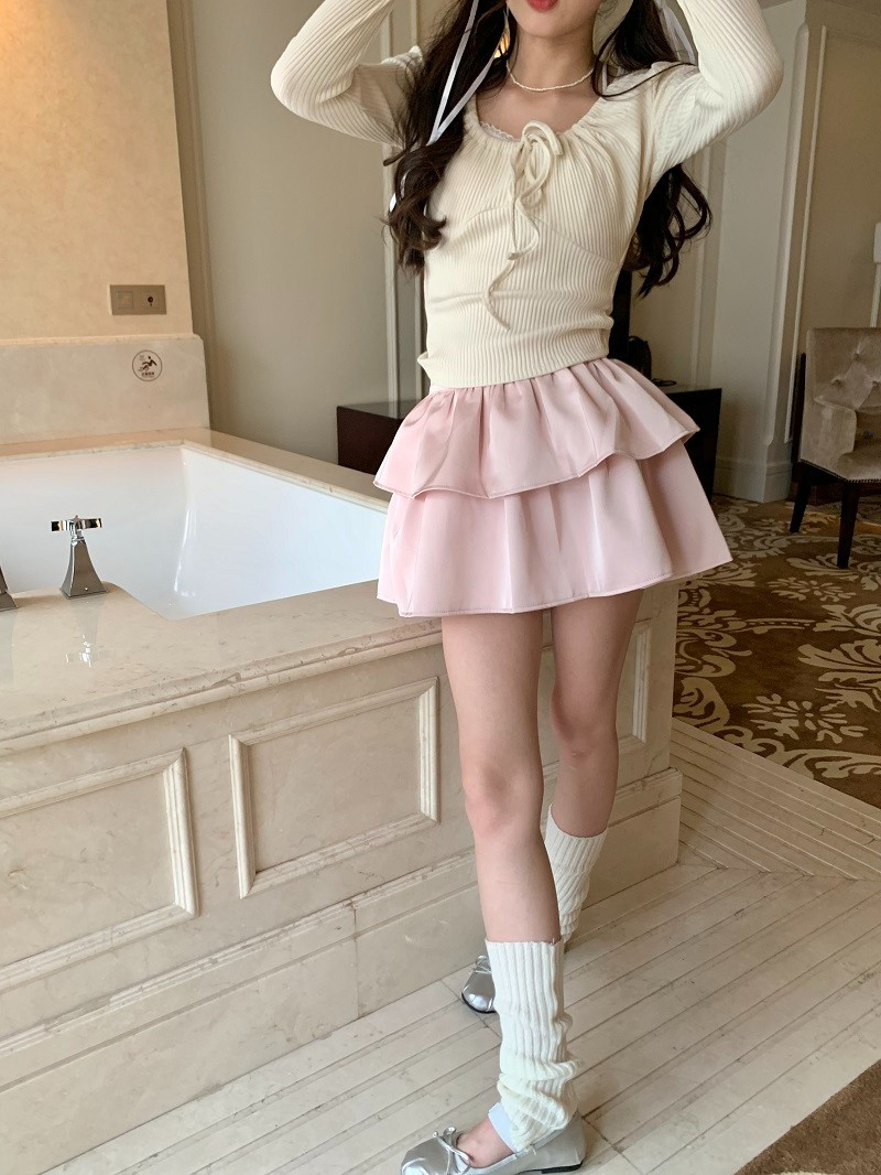 女装初心者から上級者まで幅広く楽しめる、甘くて可愛らしい二段フリルデザインのスカートです。