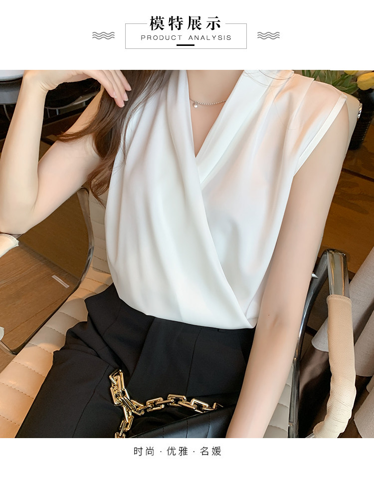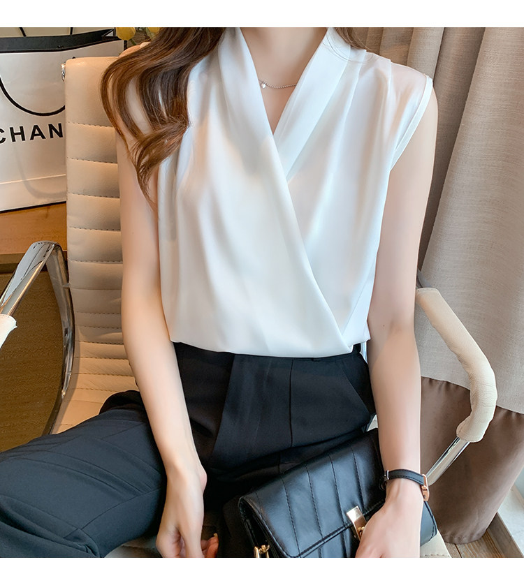 女装スタイルを上品に演出するカシュクールデザインのノースリーブブラウスです。