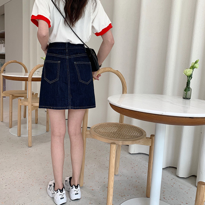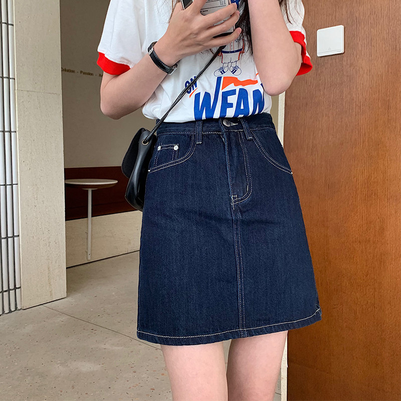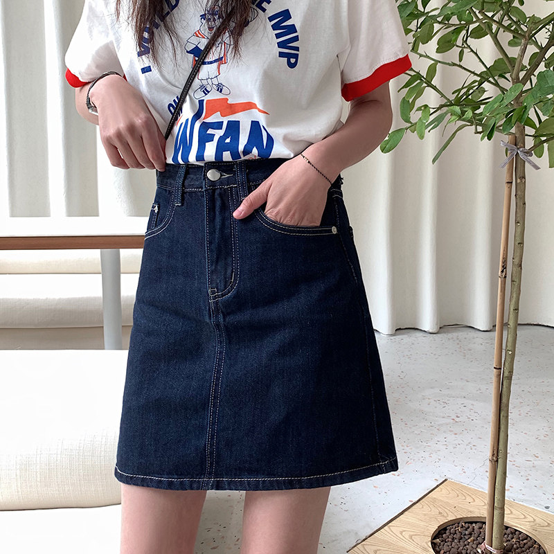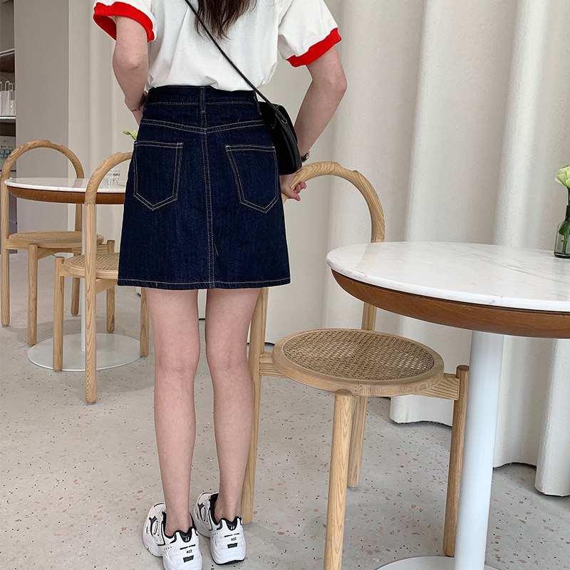 カジュアルな印象のデニム素材を使用した台形シルエットのミニ丈スカートです。