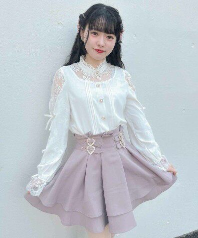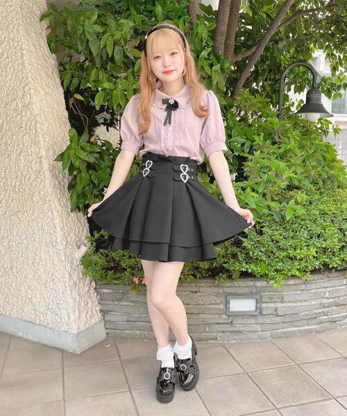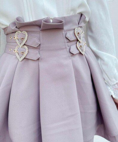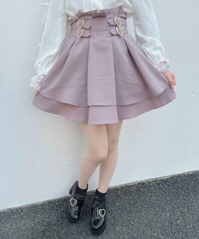 ウエスト部分にあしらわれたハート型の金具がアクセントになり、甘めのコーディネートを演出します。