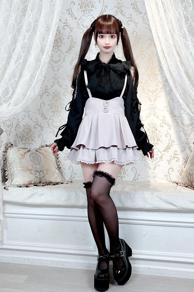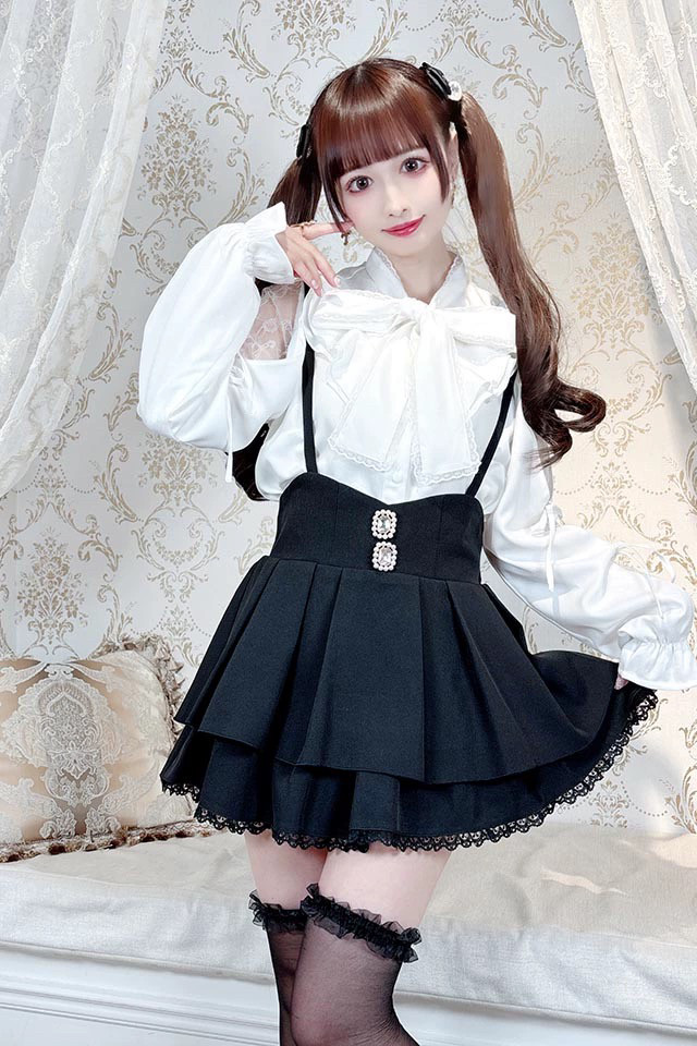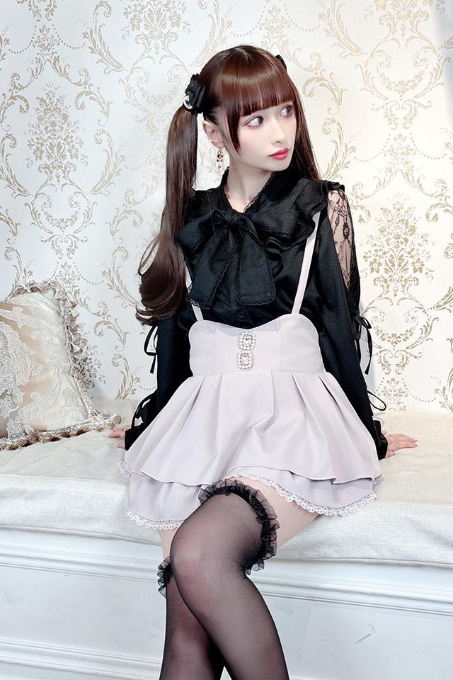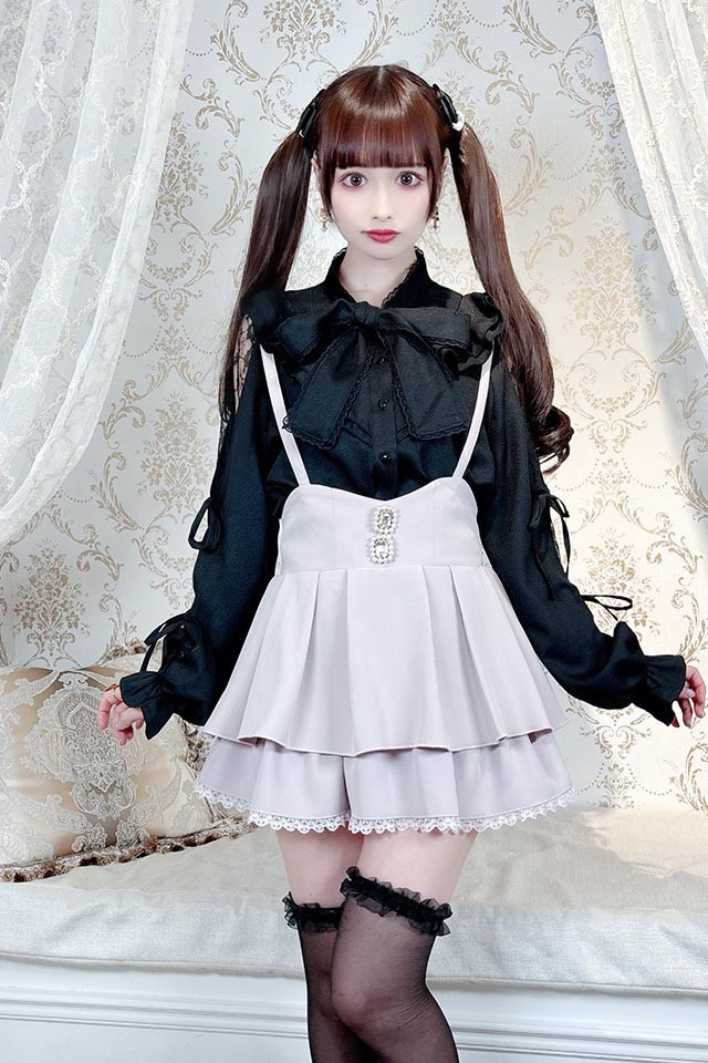サスペンダー仕様で着脱も簡単、ブラウスやシャツとの相性も抜群です。