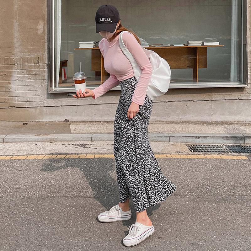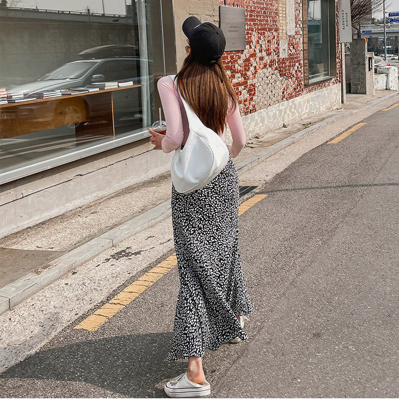 マーメイドシルエットが裾に向かって広がり、歩くたびに揺れる女性らしいラインを演出します。
