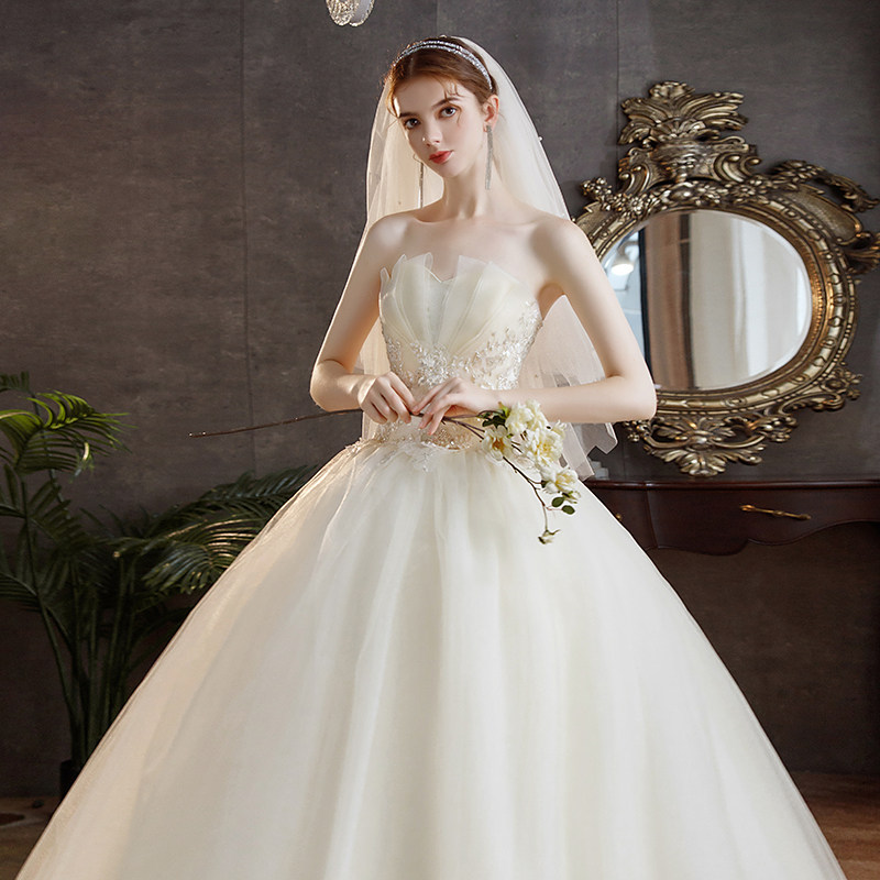 別売りのベールと合わせれば特別な日の装いが完成します。