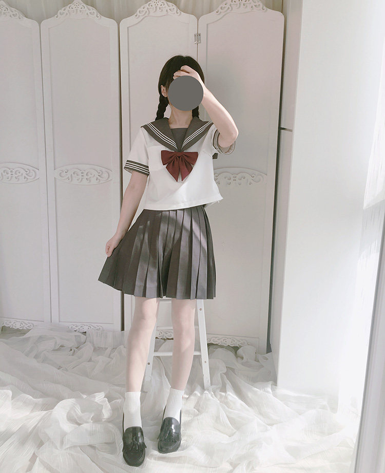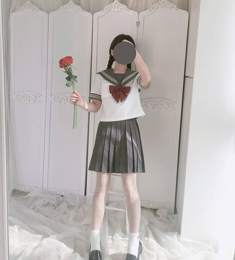 半袖トップスとプリーツスカートの組み合わせで、学生服らしい清楚で可憐な印象を実現しました。