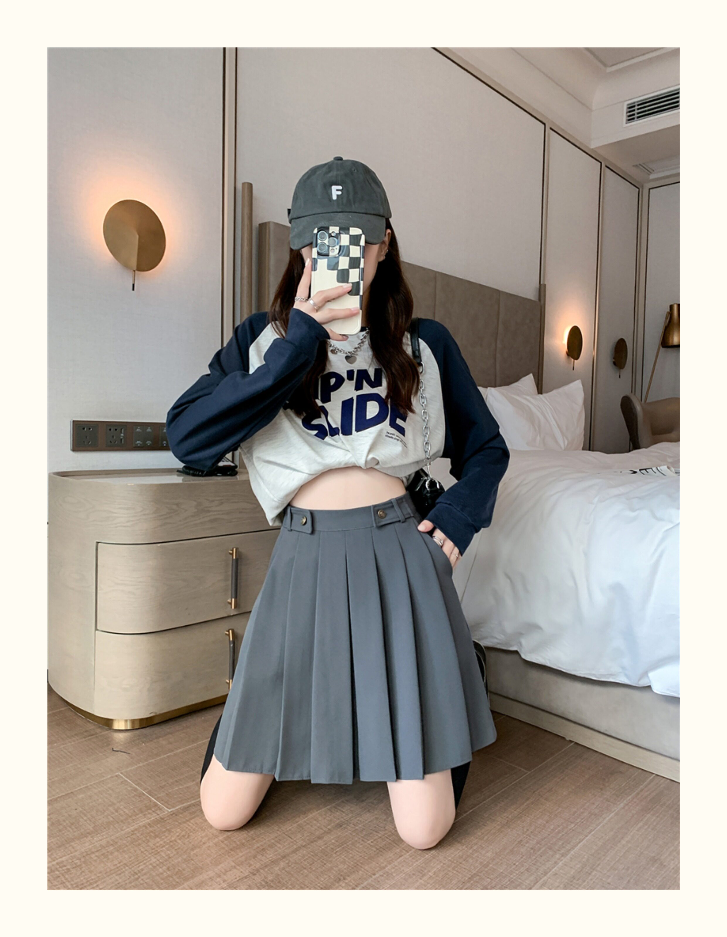 プリーツの美しい広がりが女性らしいシルエットを演出します。