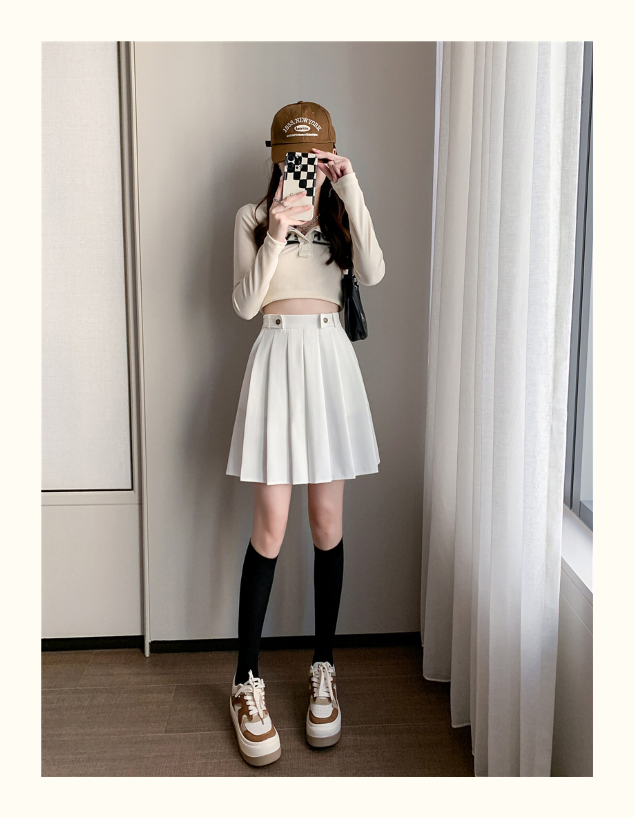 程よいミニ丈で脚長効果も期待でき、カジュアルからきれいめまで幅広いコーディネートに対応。