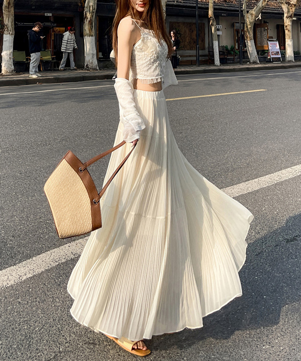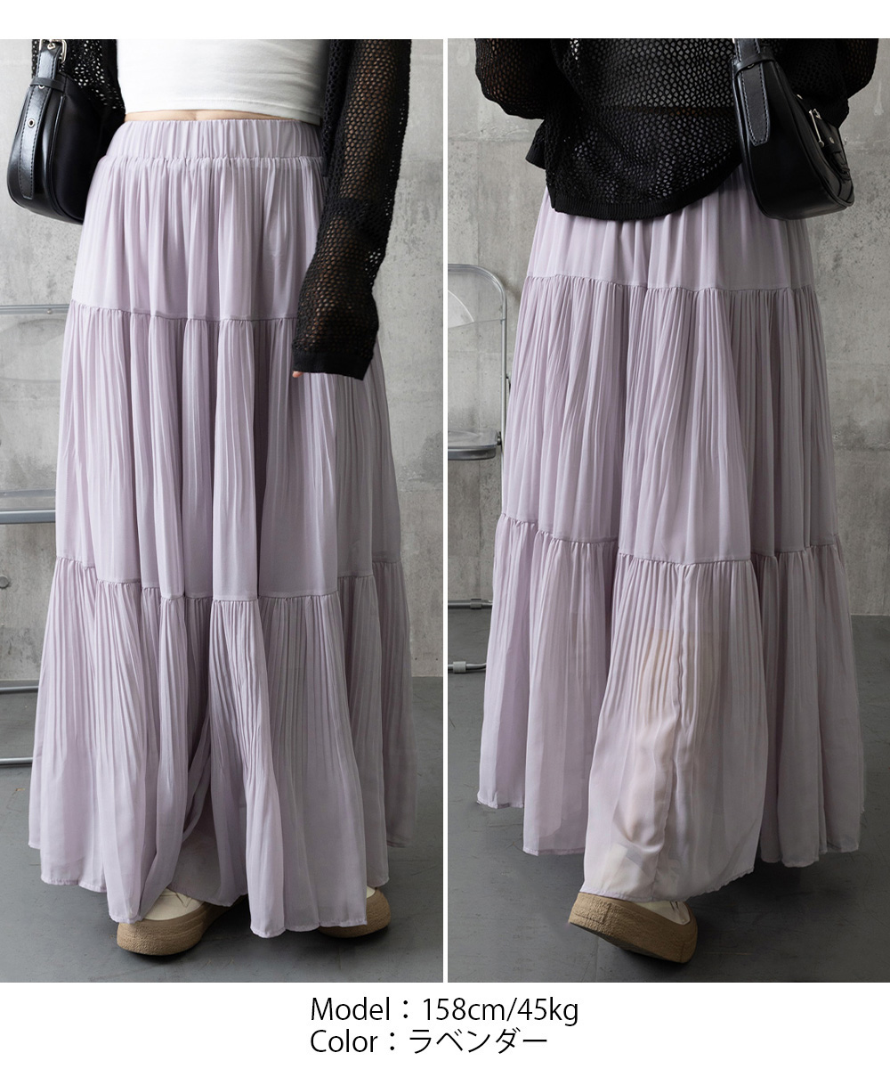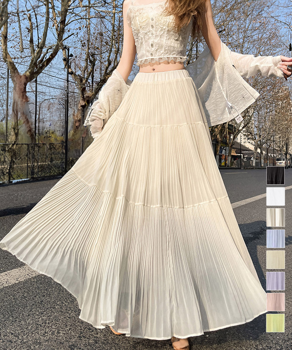 軽やかな揺れ感が魅力のシフォンプリーツロングスカート。