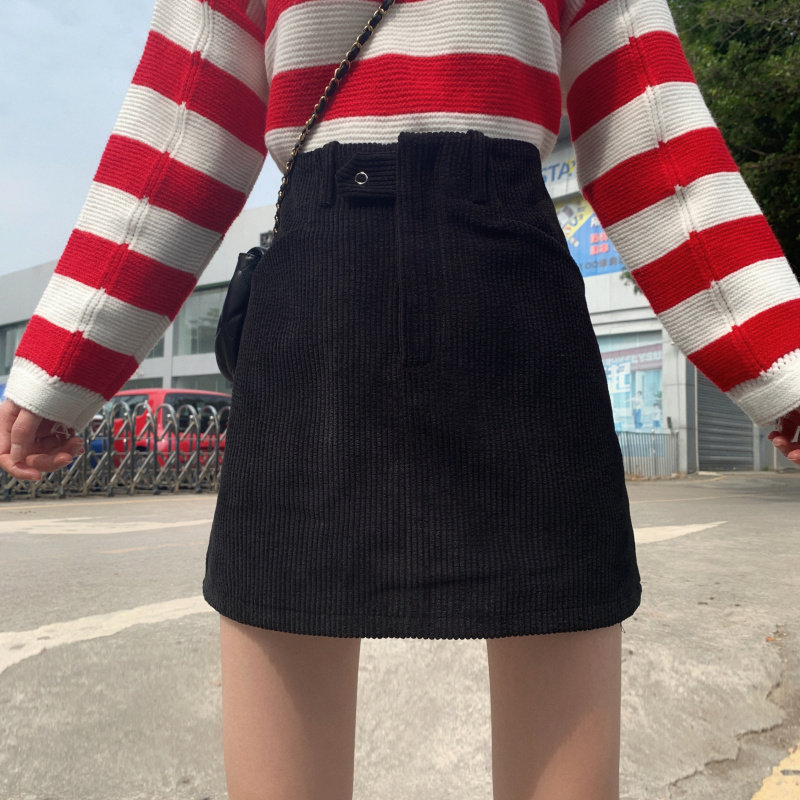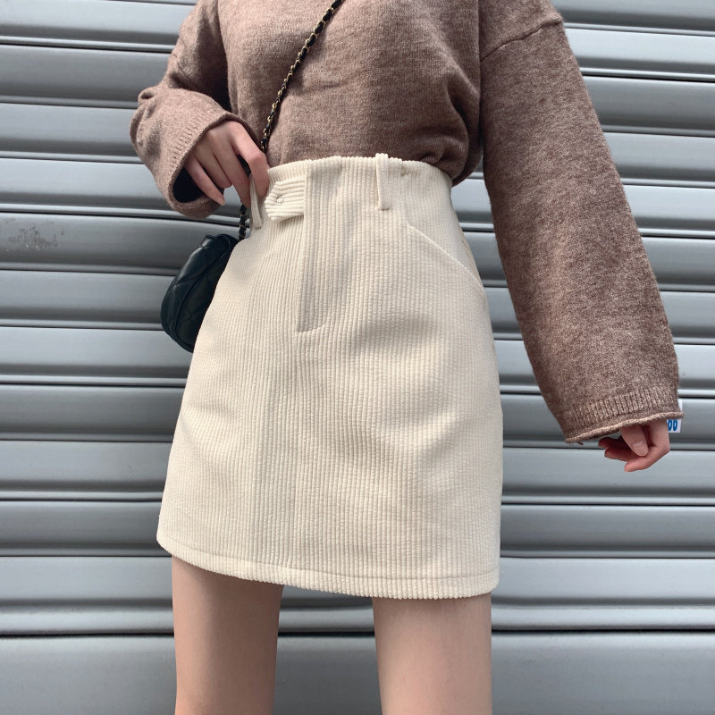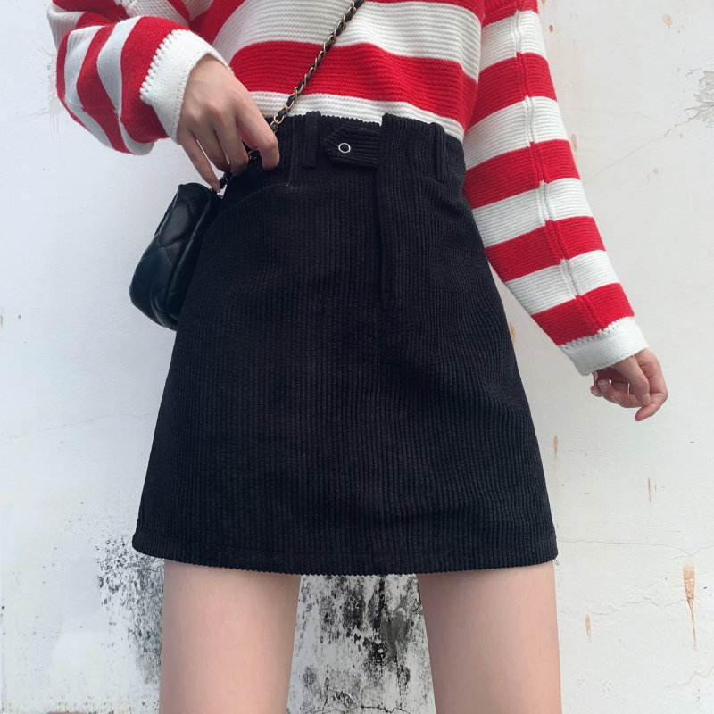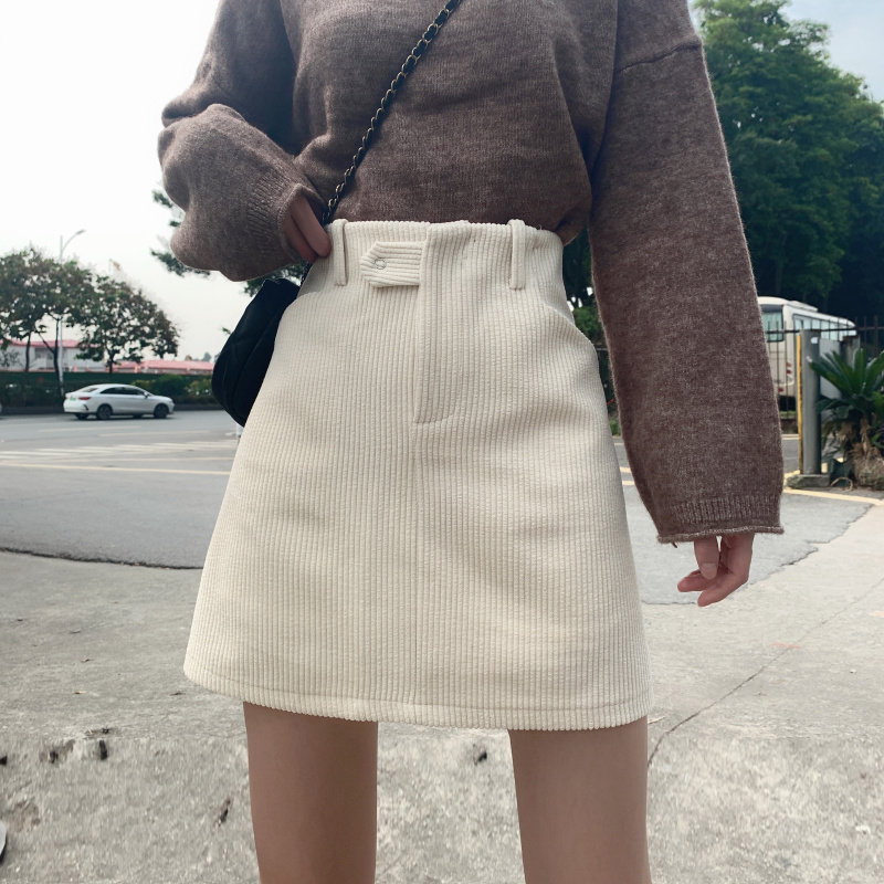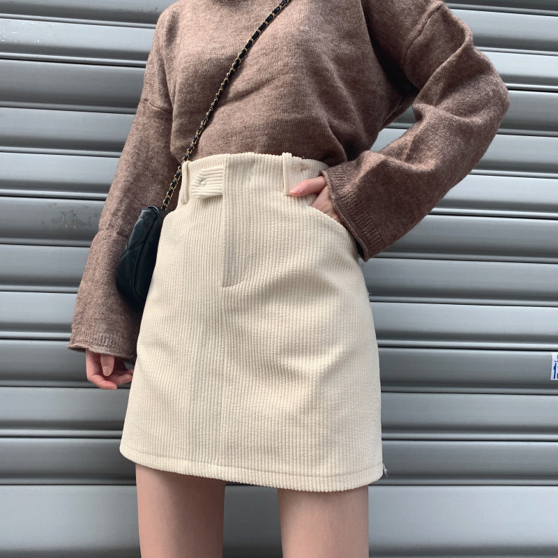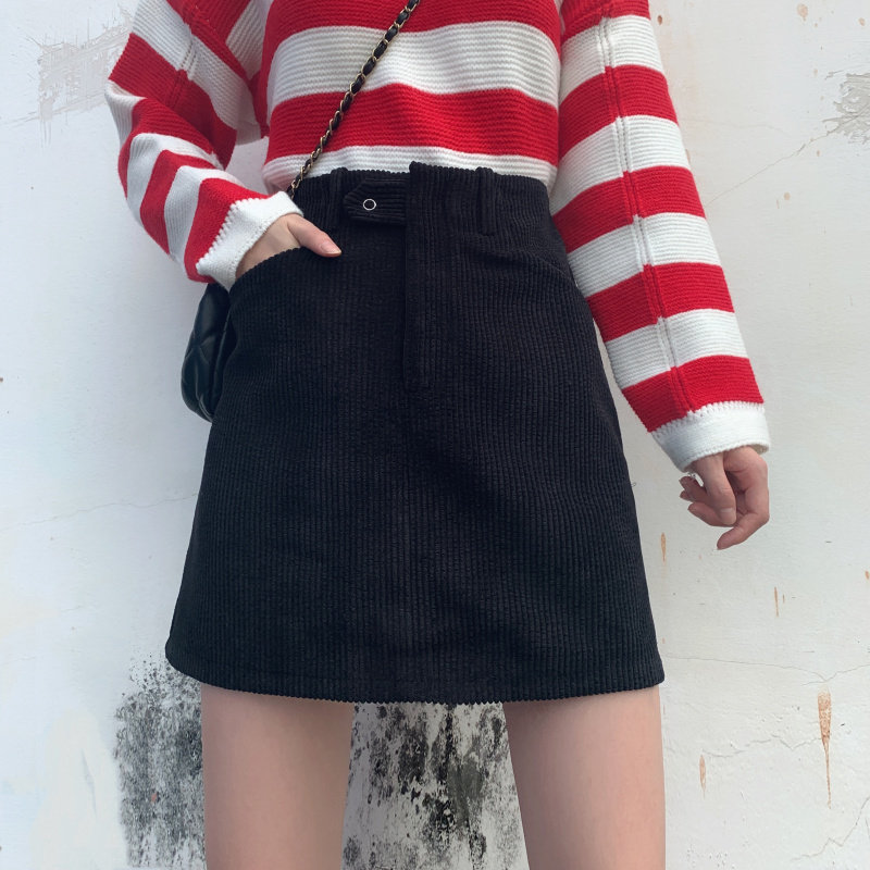 女装コーディネートにぴったりな、コーデュロイ素材の台形シルエットスカートです。