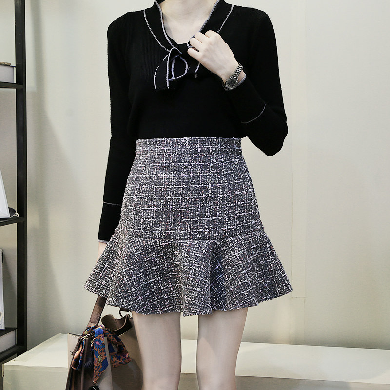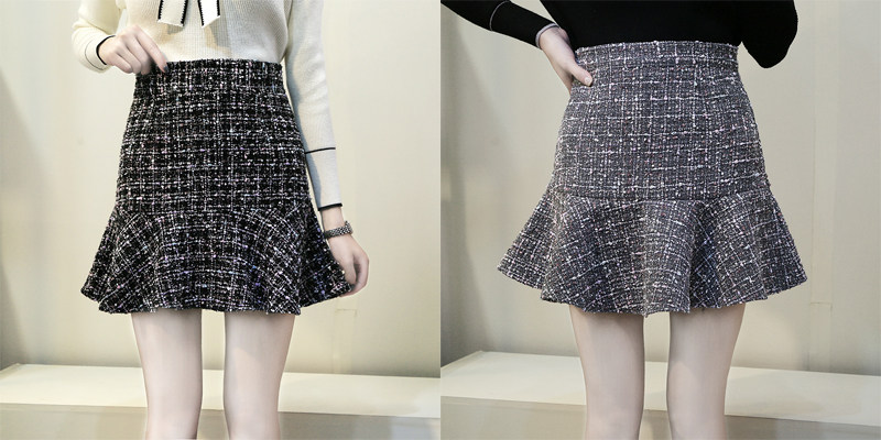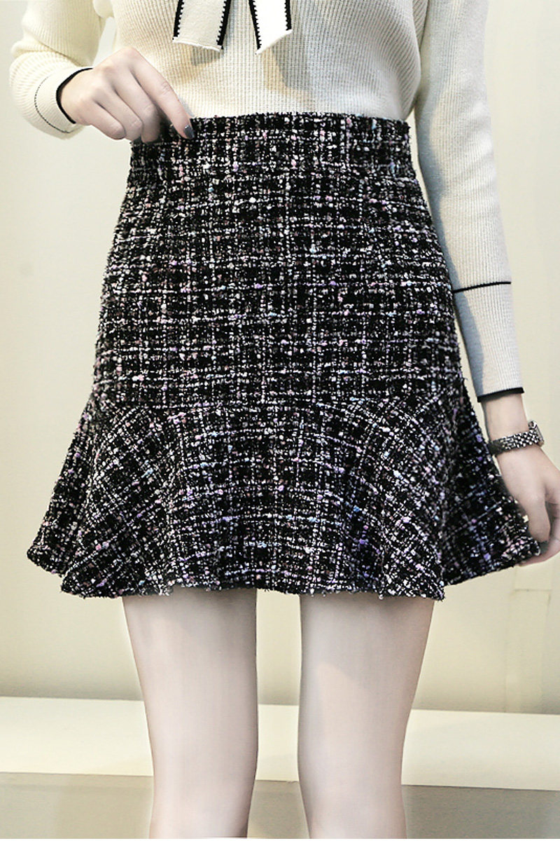 上品なツイード風素材が魅力的な台形シルエットのミニ丈スカートです。