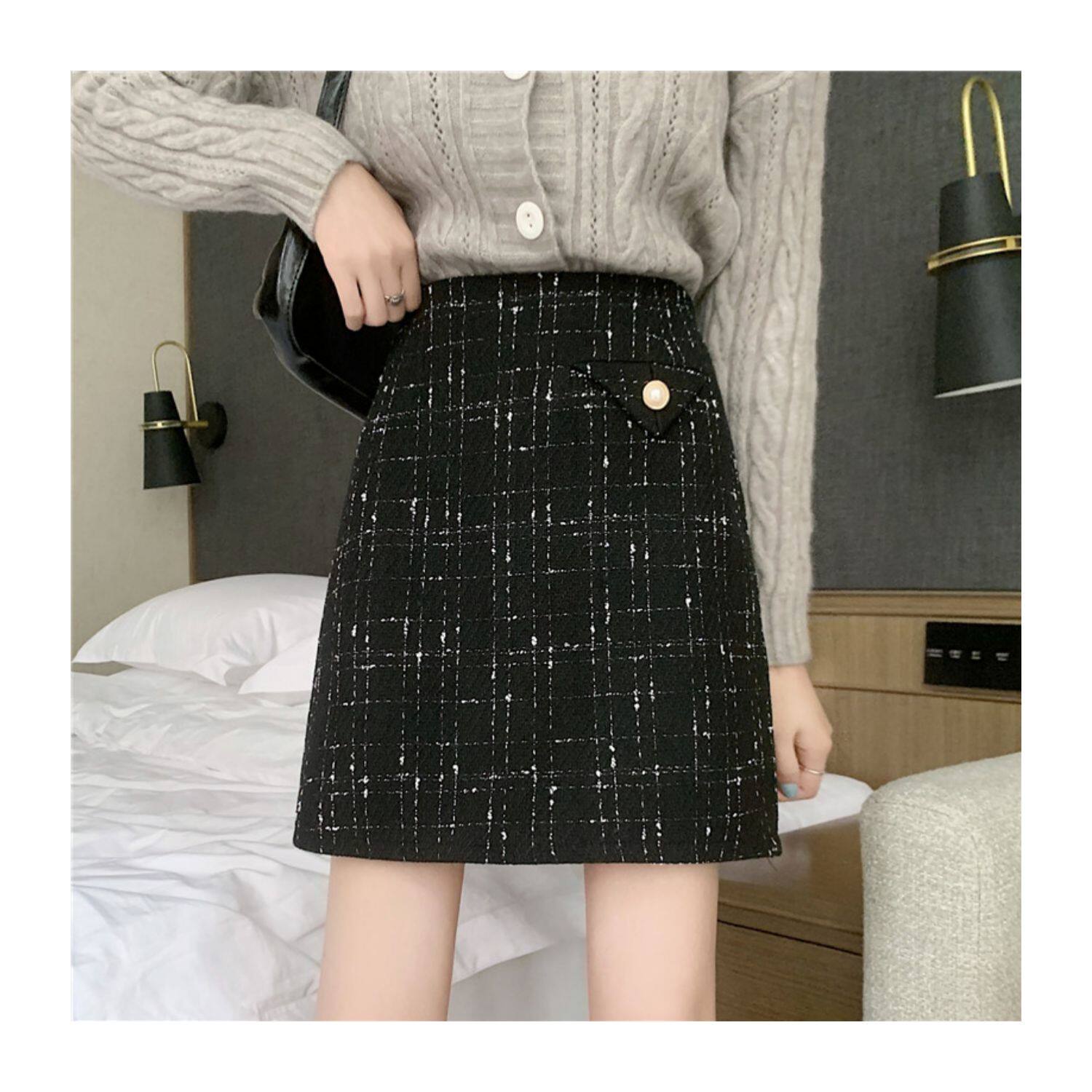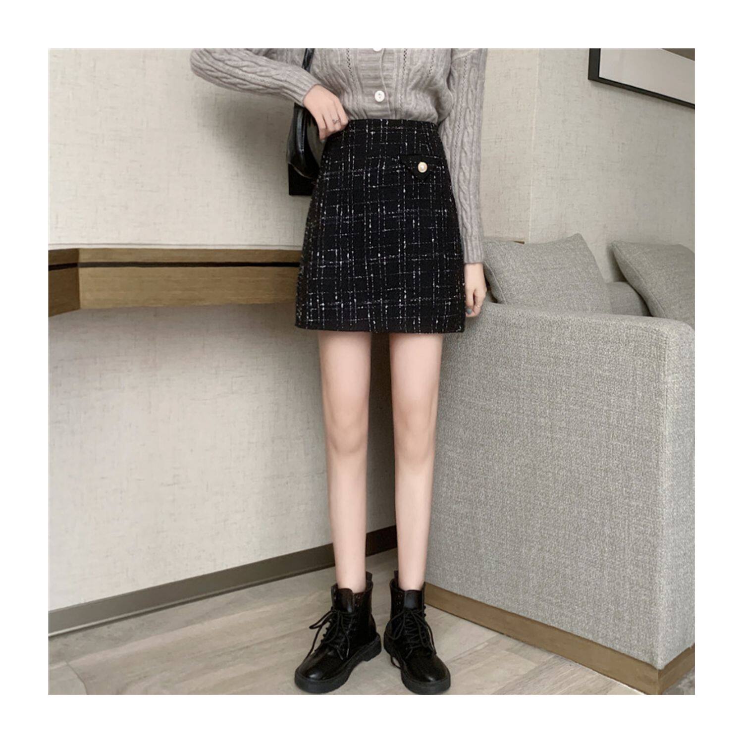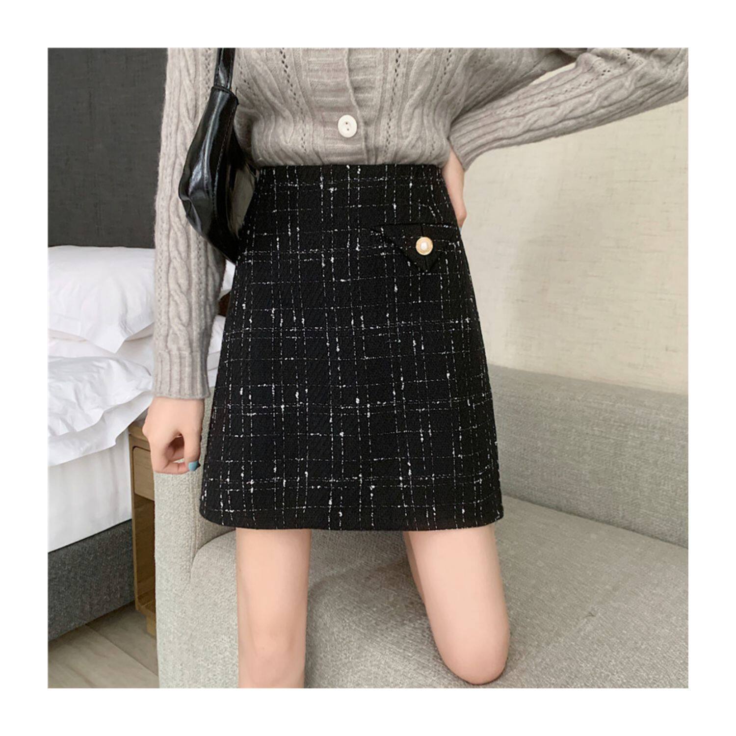 上品なツイード風生地にラメ糸を織り込んだ高級感溢れるスカートです。