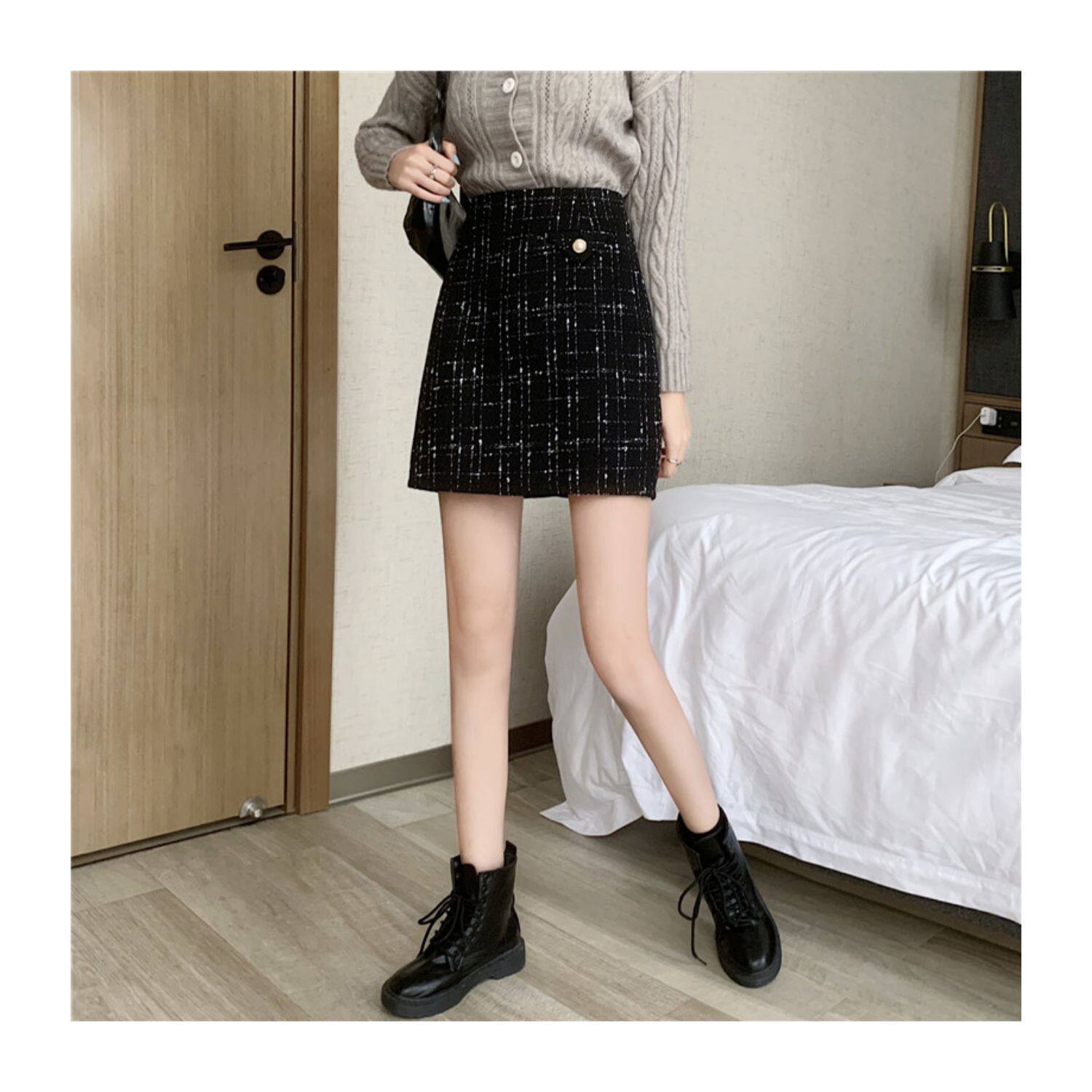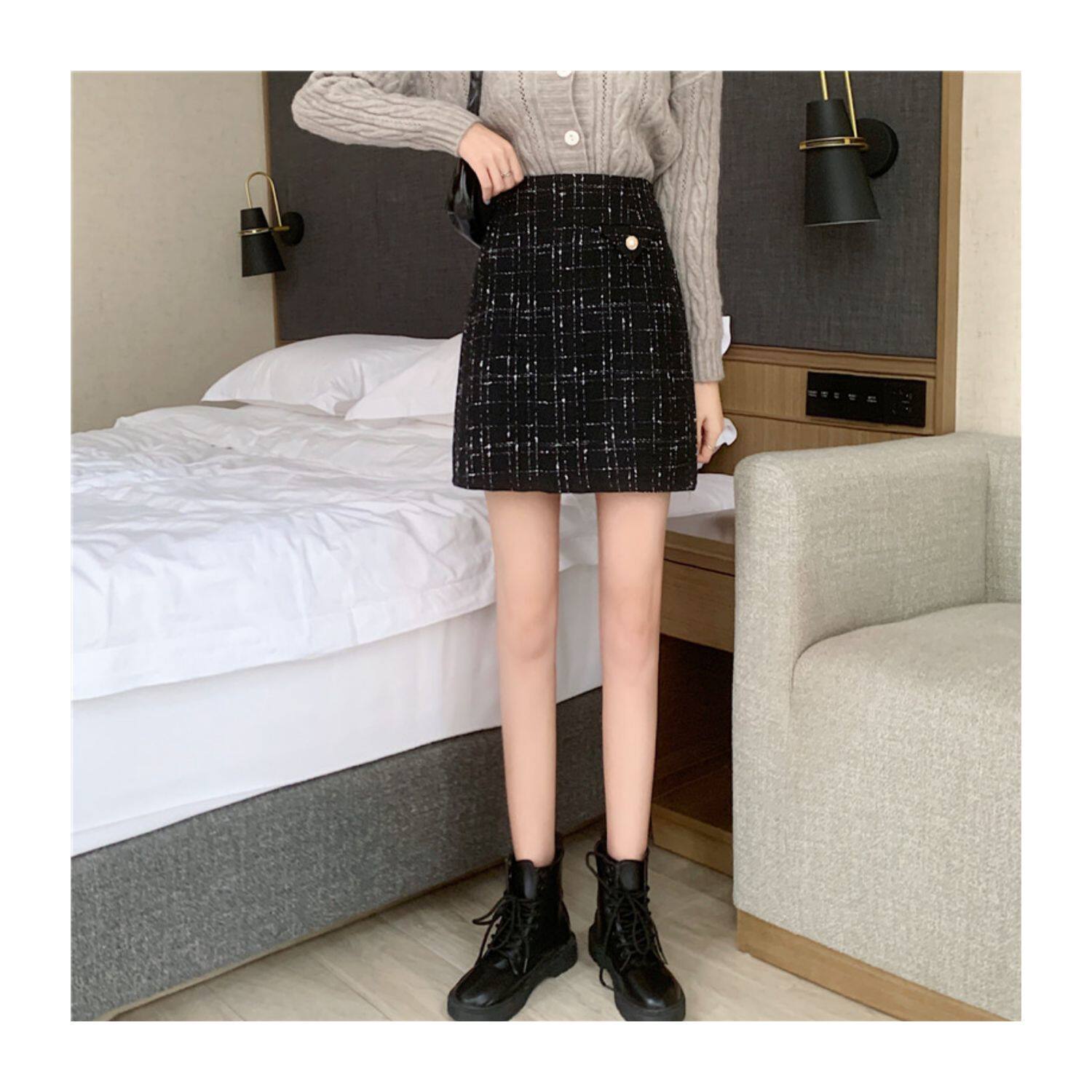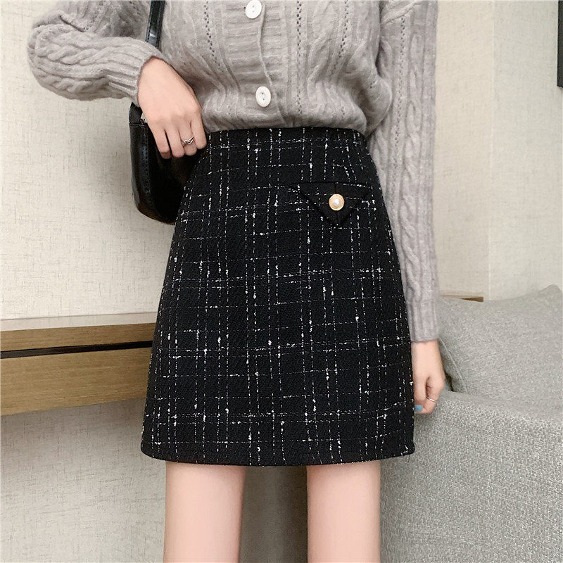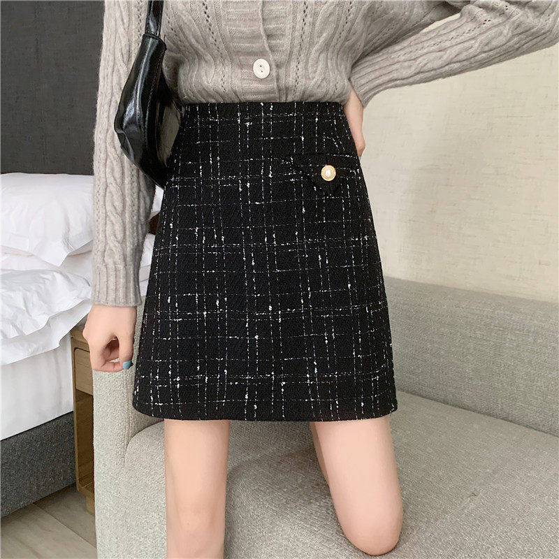 上品なツイード風生地にラメ糸を織り込んだ高級感溢れるスカートです。