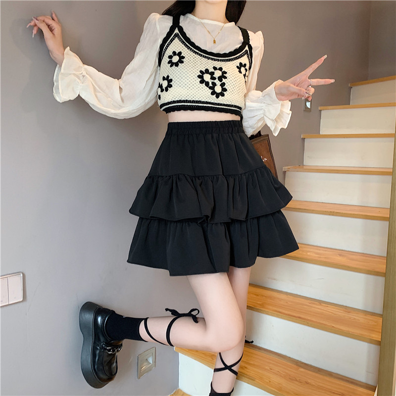 軽やかなフリルが段違いに重なり、動くたびに揺れる華やかなシルエットが魅力的です。