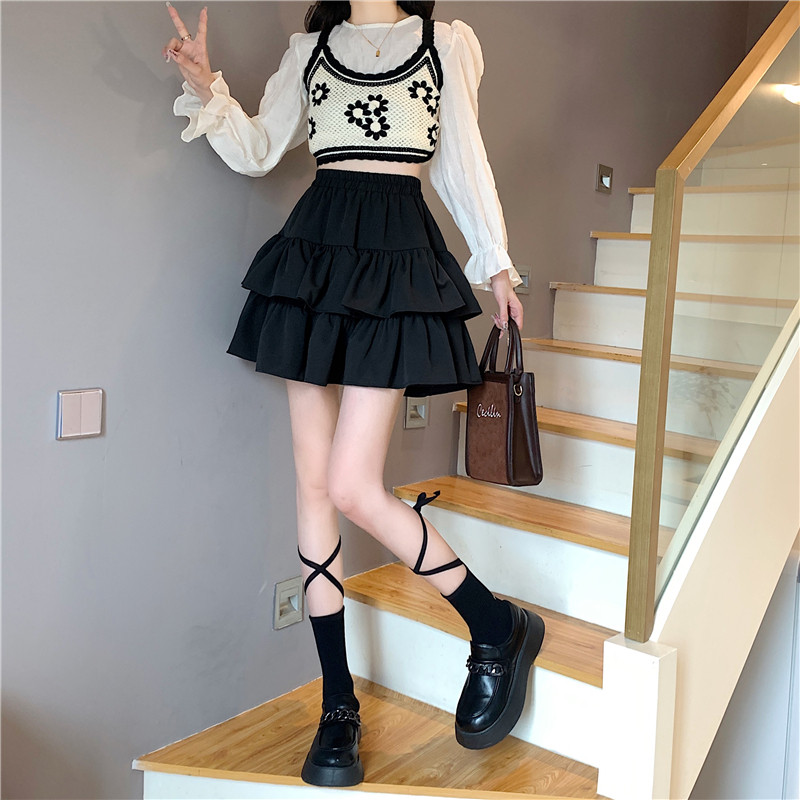 女装初心者の方にもおすすめの可愛らしい二段ティアードデザインのスカートです。