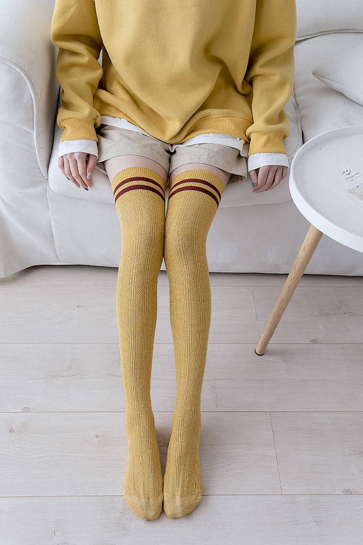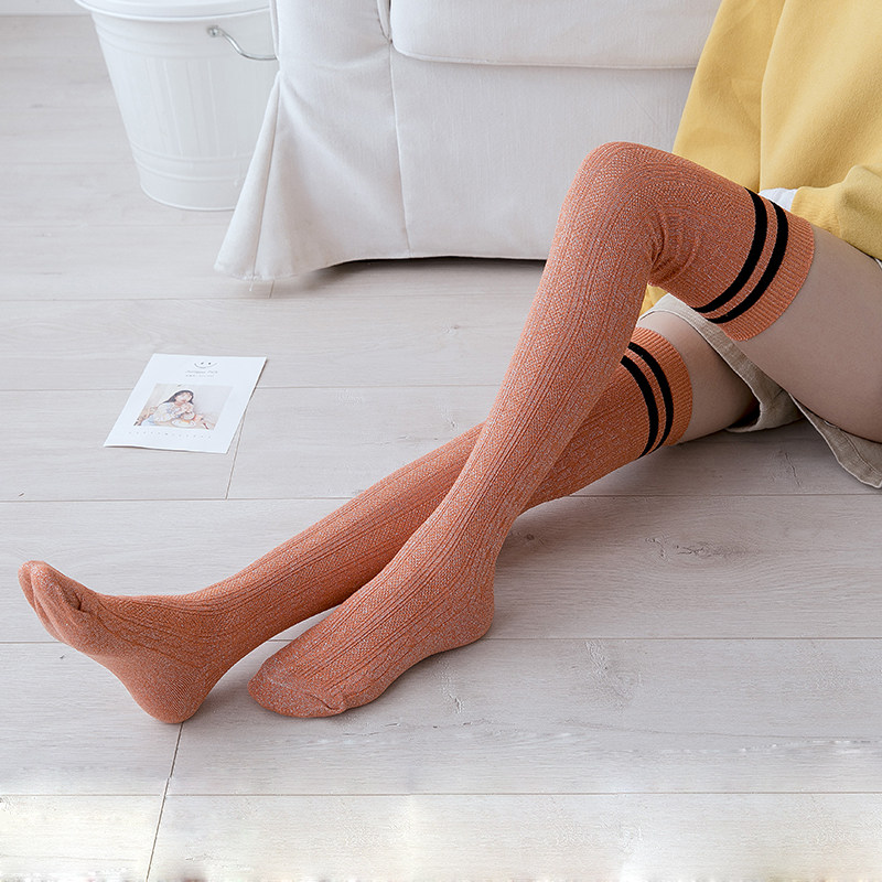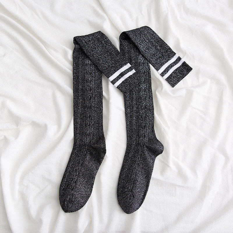 女装コーディネートを華やかに彩るラメ入りのニーハイソックスです。
