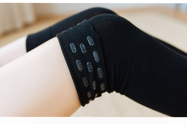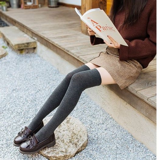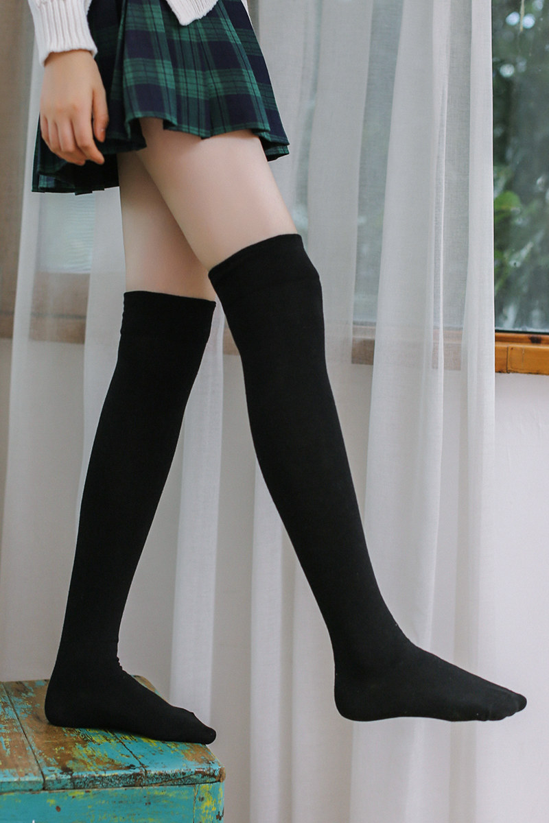 膝上までしっかり覆うニーハイ丈のタイツで、女装コーディネートに上品さと洗練された印象をプラスします。