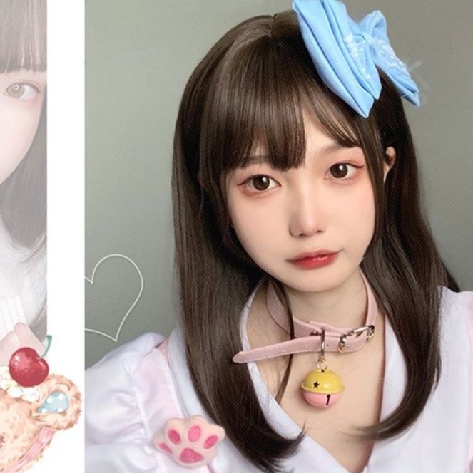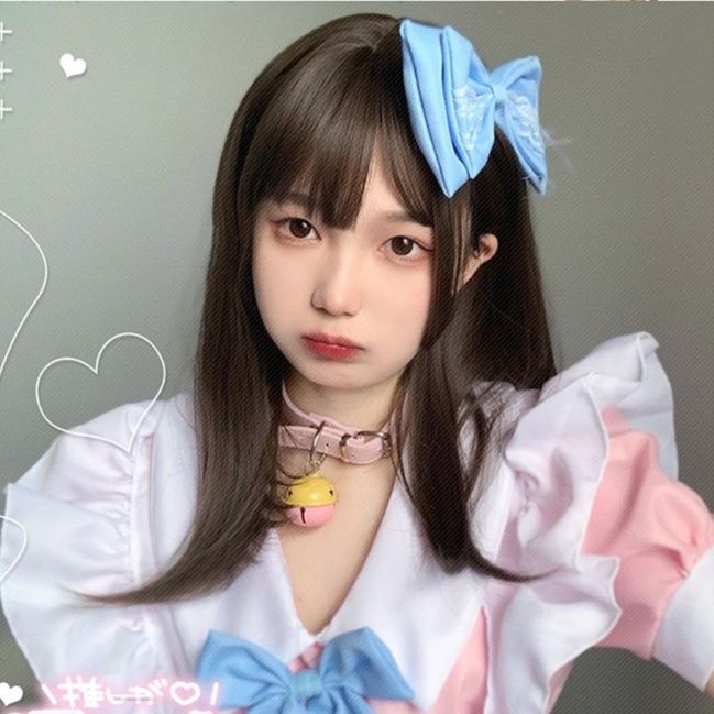 女装初心者にもおすすめの自然な仕上がりが魅力のウィッグです。 きれいに揃った前髪と胸元まで伸びるミディアム丈のストレートヘアが柔らかい印象を演出します。 サラサラとした質感で自然なツヤ感があり、顔周りを優しく包み込むシルエットが特徴です。 リボンやカチューシャなどのヘアアクセサリーとも相性抜群で、可愛らしいスタイルを簡単に楽しめます。