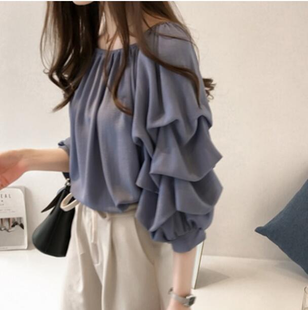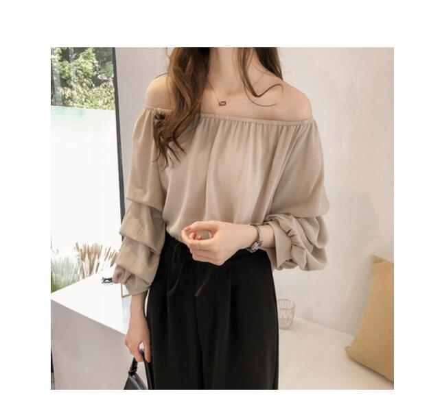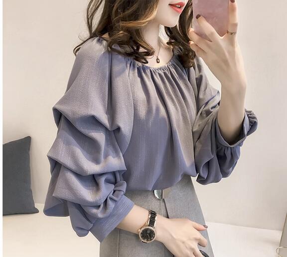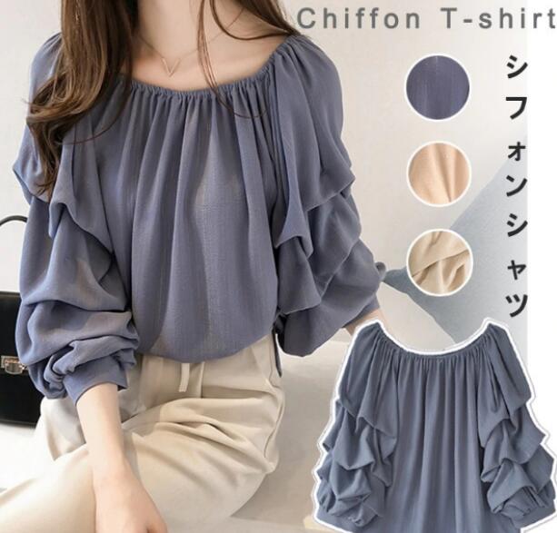 柔らかなシフォン素材の長袖ブラウスドレス。