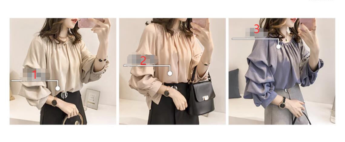 首元のギャザーと袖口のリボンが上品な印象を与えます。